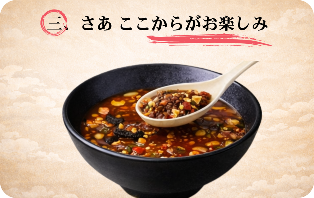 スープの底に沈んだ具材と旨みが、
